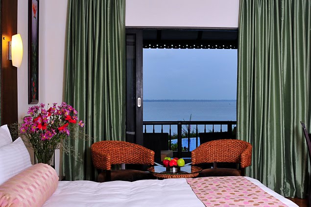 At Ramada Resort, just half-an-hour from the hustle and bustle of Kochi, it's serenity, food, and a good swim any time you please. Bordering the Kumbalam Lake, this eight-acre resort has a long pool which is accessible to every waterfront cottage. There are 24 cottages that face the Kumbalam backwaters. In fact, the idea is that every room has its own space in the pool, while across the pool, the lake meanders along, the various islets dotting the lake lending their own charm to the scenic splendour.